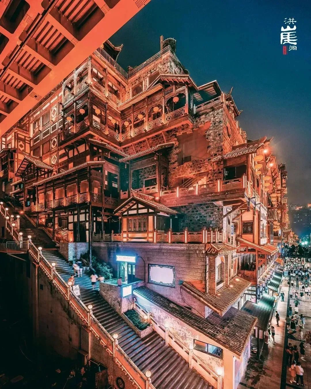 憑借巴渝傳統(tǒng)特色建筑的吊腳樓,光怪陸離的夜景,以及媲美《千與千尋》的二次元的視覺呈現(xiàn),在開街10年后進(jìn)入“黃金時(shí)代”,借助新媒體和IP話題發(fā)酵不斷攀升,發(fā)展成為如今的頂流的IP網(wǎng)紅地標(biāo)。