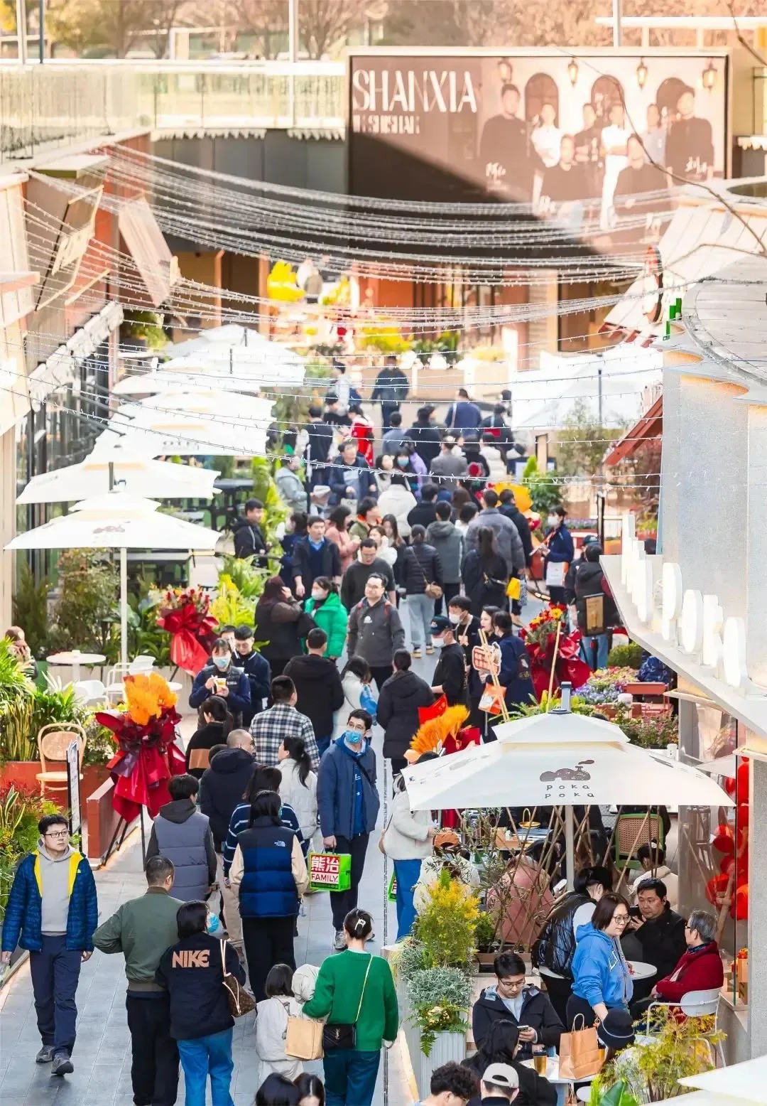 在“山下”,游客們仿佛置身于一場(chǎng)盛大的派對(duì)之中,無論是漫步于獅子山下,還是沉浸在社交互動(dòng)之中,都能感受到那份精致的人間煙火氣。開業(yè)慶典上,萌寵大賽、現(xiàn)場(chǎng)樂隊(duì)演奏及煙花秀等精彩活動(dòng)輪番上演,為消費(fèi)者帶來了一場(chǎng)視聽盛宴,吸引了眾多熱愛生活、追求社交的年輕人。此外,項(xiàng)目還貼心地在凹嵌的“石壁”處設(shè)置了休息區(qū),為游逛的客人提供了一個(gè)靜謐的休憩與社交空間,讓人仿佛置身于世外桃源,享受片刻的寧靜與放松。