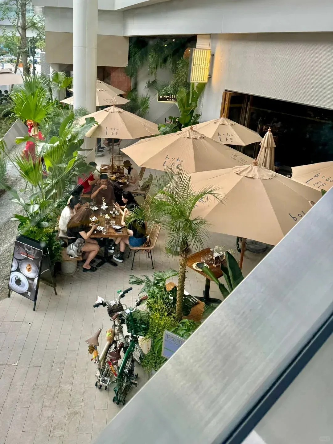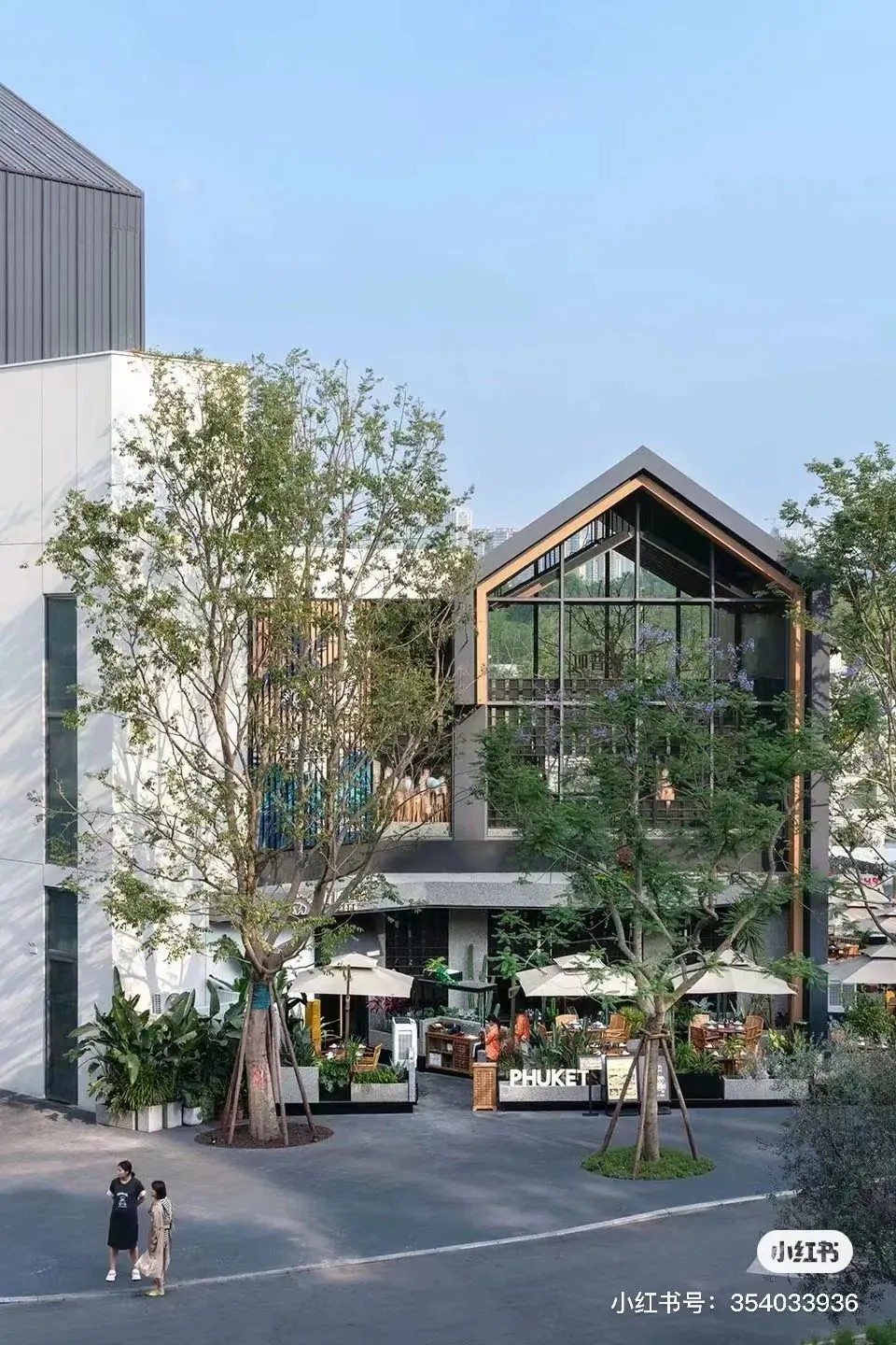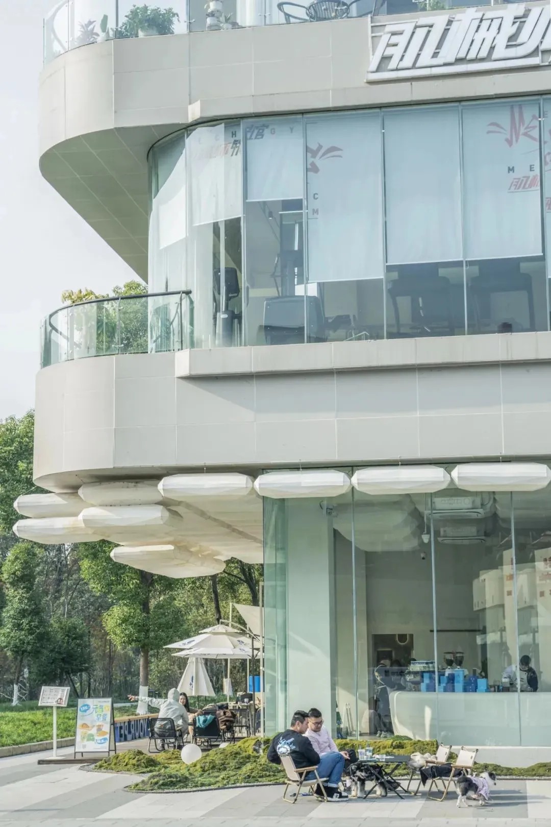 街道旁的建筑采用了大面積落地窗設(shè)計(jì),讓室外的綠意與光線無縫融入室內(nèi)空間,營(yíng)造出一種開闊而明亮的氛圍,使人心曠神怡,毫無拘束之感。