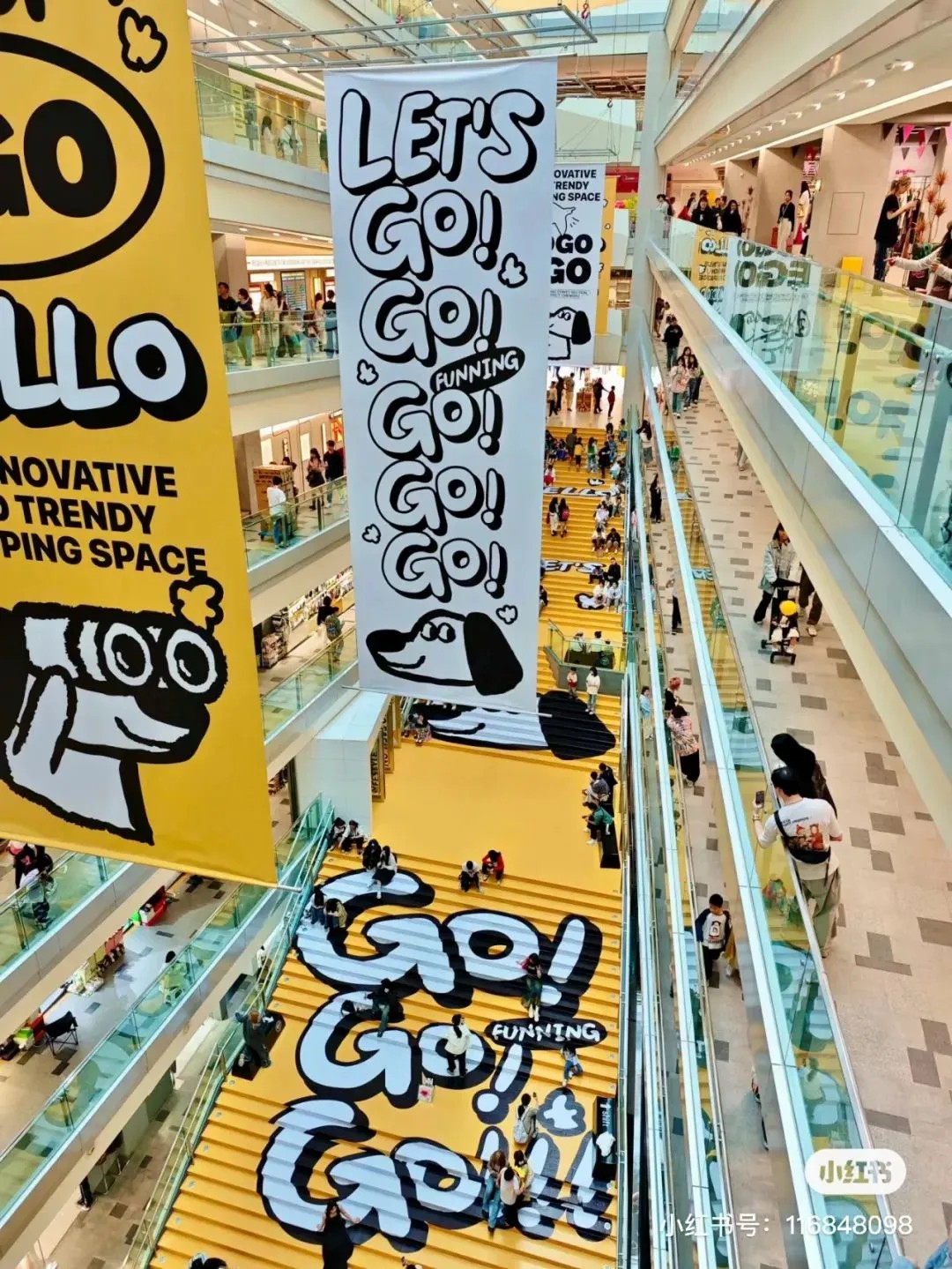 抵達(dá)商場(chǎng)入口,一抹鮮亮黃彩瞬間吸引目光;步入大堂,簡(jiǎn)潔廣告語(yǔ)映入眼簾,色調(diào)與設(shè)計(jì)渾然統(tǒng)一,主通道沐浴在明媚黃光中,配以吉祥物GoGo萌態(tài)畫像,攝影佳作信手拈來,隨手一拍皆是風(fēng)景畫。