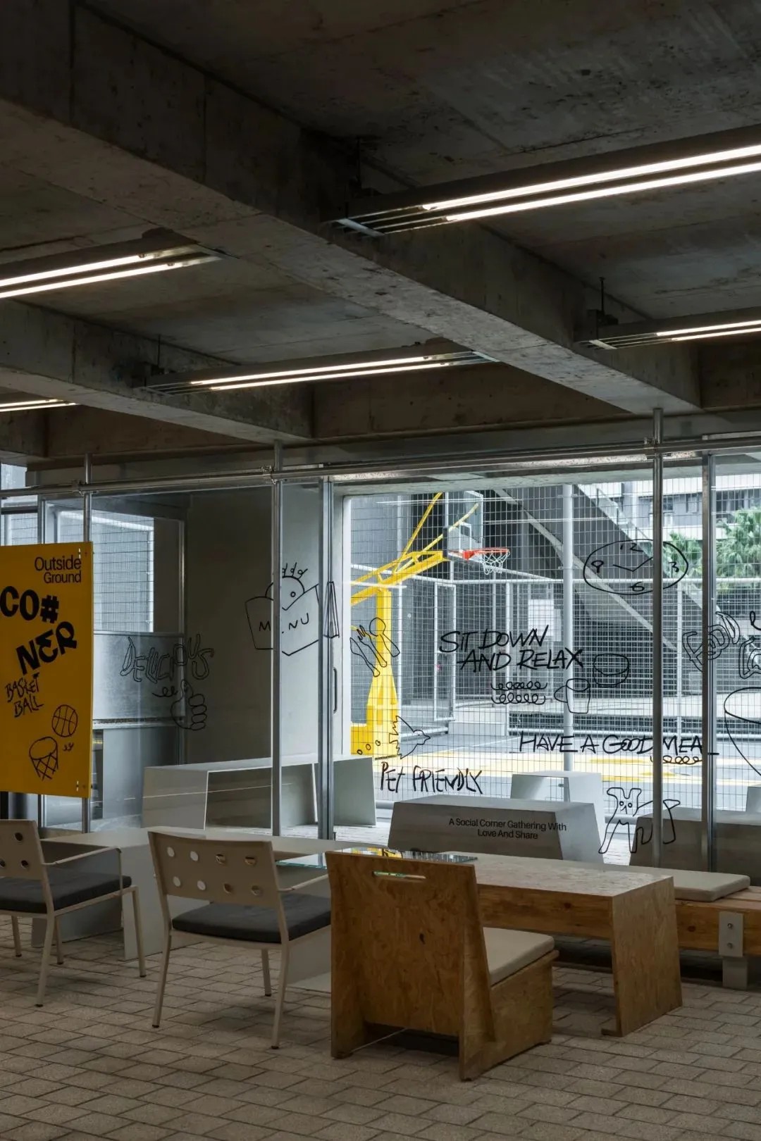 CO#NER食堂,以禁欲系冷淡風(fēng)為主旋律,設(shè)計(jì)上承襲了極致輕工業(yè)的時(shí)尚美學(xué),細(xì)膩而不失格調(diào)。其獨(dú)特的售賣模式圍繞模塊化“檔口”展開,融合POP UP快閃店概念,營(yíng)造出既持續(xù)又多變的用餐氛圍,旨在為顧客解鎖無限可能的美食探索之旅。空間內(nèi),水泥原色與暖木色家具巧妙碰撞,輔以生動(dòng)活潑的簡(jiǎn)筆插畫,色彩斑斕間傳遞出溫馨舒適的放松信號(hào),讓人在享受美食的同時(shí),也能感受到心靈的慰藉。