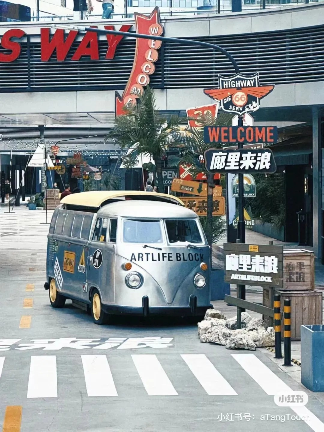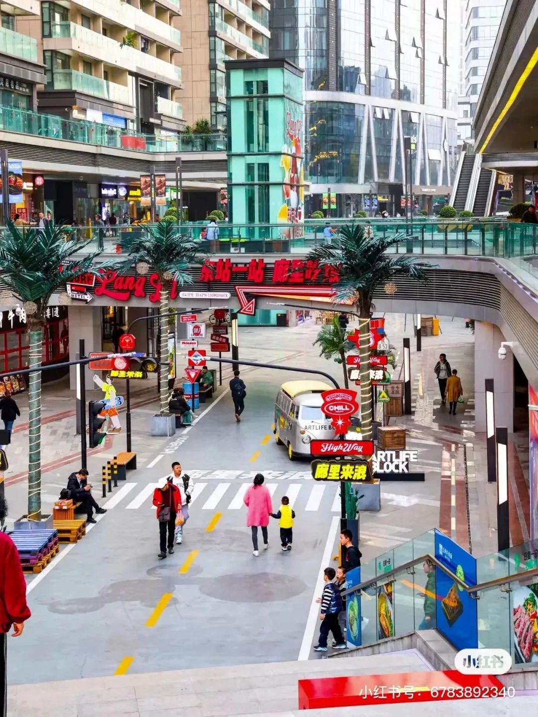 街區(qū)核心的下沉式廣場(chǎng),匠心獨(dú)運(yùn),以美式公路風(fēng)情為藍(lán)本,巧妙融合異域風(fēng)韻與休閑度假氣息,不僅設(shè)計(jì)獨(dú)樹一幟,更成攝影打卡新寵,讓人仿佛穿越時(shí)空,瞬間切換場(chǎng)景,領(lǐng)略多元文化的魅力。此舉不僅巧妙解決了傳統(tǒng)商業(yè)下沉空間引流之困,更為其注入了勃勃生機(jī)與無限可能。