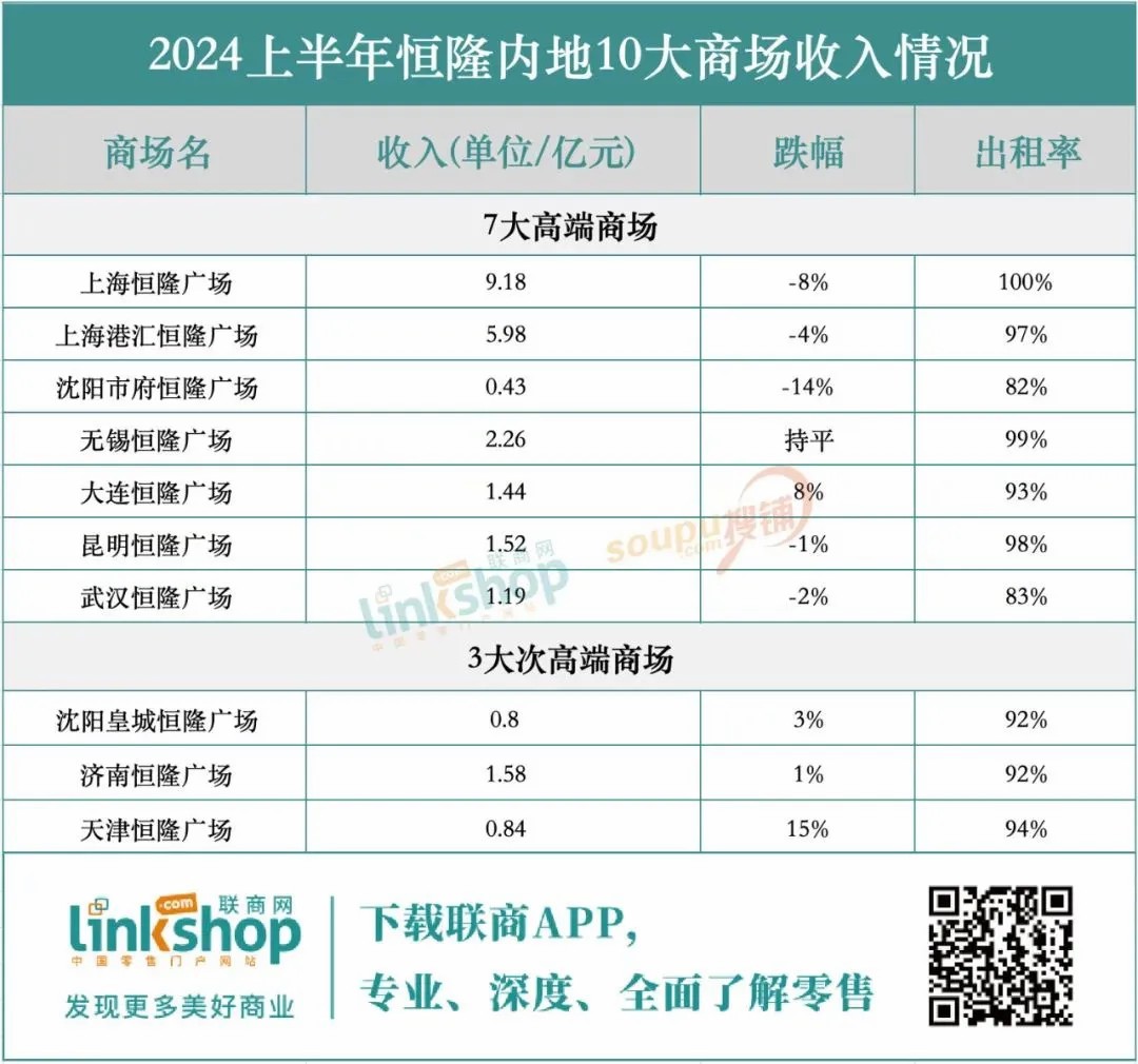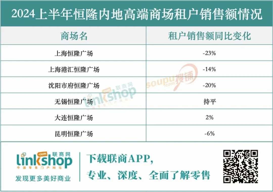 特別值得注意的是,恒隆集團(tuán)在內(nèi)地的市場表現(xiàn)尤為嚴(yán)峻。內(nèi)地整體租賃收入同比下滑了4%,而租戶銷售額更是大幅下滑了13%,這些數(shù)據(jù)清晰地反映了內(nèi)地奢侈品消費(fèi)市場的疲軟態(tài)勢。具體到零售物業(yè)方面,恒隆在內(nèi)地的商場組合收入也在2024上半年遭遇了3%的下滑,進(jìn)一步凸顯了內(nèi)地市場面臨的挑戰(zhàn)。這一趨勢不僅影響了恒隆的短期業(yè)績,也可能對其長期戰(zhàn)略布局和市場信心產(chǎn)生深遠(yuǎn)影響。