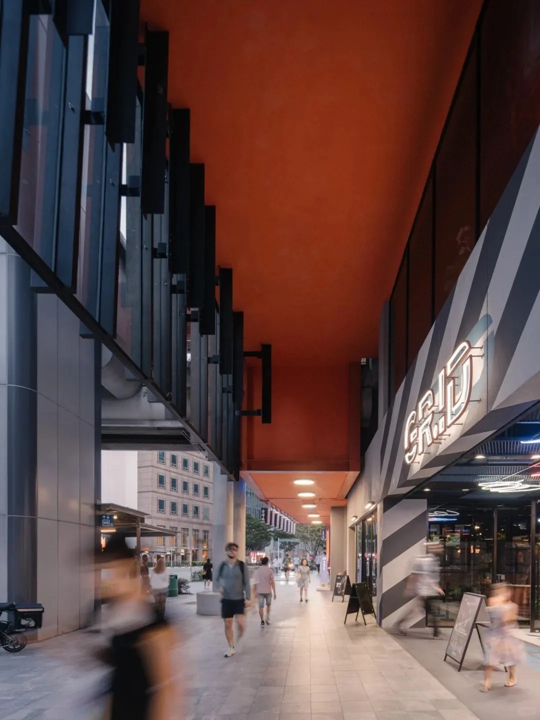 GRiD不僅是商業(yè)與教育中心,更是社區(qū)放松交流的關(guān)鍵場所。憑借獨特的后工業(yè)美學(xué),成功將街角轉(zhuǎn)變?yōu)榧缃?、體驗、休閑于一體的現(xiàn)代化社區(qū)中心,不僅提升了建筑功能與視覺魅力,更為周邊居民帶來了全新的生活方式與情感價值體驗,成為社區(qū)生活的活力源泉。