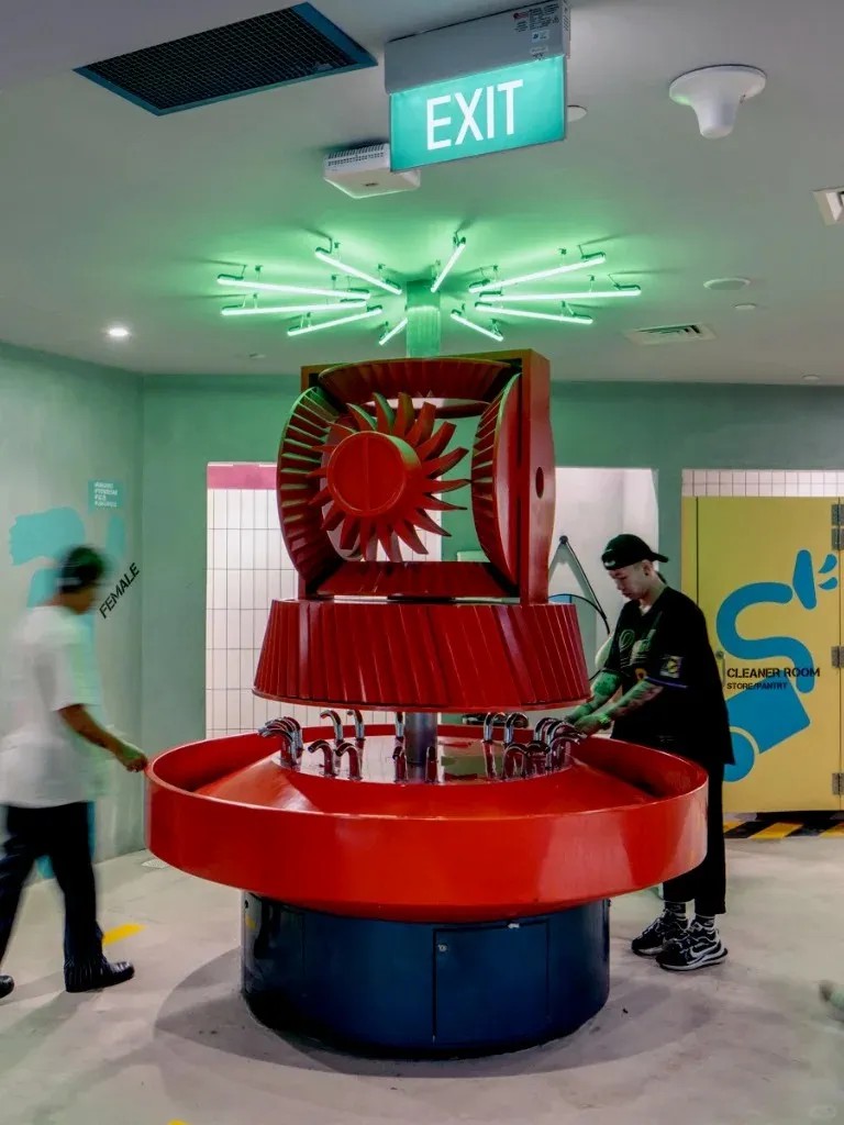 新加坡GRiD項目位于實利基藝術(shù)區(qū),經(jīng)設(shè)計改造,將普通街角轉(zhuǎn)變?yōu)榛盍λ囊绲膭?chuàng)意社交中心。其立面改造尤為亮眼,通過重新設(shè)計建筑轉(zhuǎn)角,運用工業(yè)風(fēng)材料與肌理,彰顯朋克搖滾精神與自由表達風(fēng)格,成為引人注目的視覺焦點與地標(biāo)。