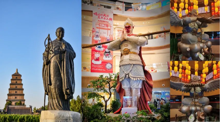 以西安大悅城為例,他深挖大唐、長(zhǎng)安歷史文化底蘊(yùn),與在地城市地標(biāo)形成呼應(yīng),中庭悟空與大雁塔玄奘雕像隔街對(duì)望,并打造契合潮流時(shí)尚客群訴求的“勿空”美食街區(qū)與“不戒食巷”,街區(qū)內(nèi)的墻體上還有師徒四人取經(jīng)歸來(lái)的立體壁畫,讓原本只以美陳形式存在的孫悟空、豬八戒變成文化傳播的紐帶。